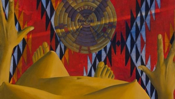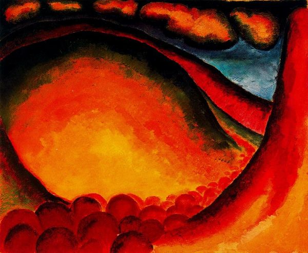 Marsden Hartley made this painting, titled Yliaster, with oil on board, and what strikes me is the way he’s pushed the landscape into something almost otherworldly with those colours. There is a real feel for the materiality of paint here; the way the brushstrokes follow the forms of the mountains, and the way he’s used colour to create depth and shadow is really fascinating. Look at the pool in the foreground. The concentric ripples around it create a sense of movement, contrasting the geometric shapes of the surrounding landscape. It's like the whole painting is built out of simplified shapes. Hartley was always searching, spiritually and artistically. I'm reminded a little of Georgia O'Keefe's landscapes. They both find a unique language to depict the American landscape, turning it into something deeply personal and symbolic. And, like O’Keefe, Hartley reminds us that paintings don’t have to be literal. It’s more like an invitation to dream.