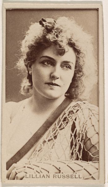 Editor: Here we have an 1889 photographic print called *Ada Rehan*, part of the "Actresses" series by William S. Kimball & Co. There’s a softness to the image, despite its being a commercial cigarette card, and Rehan's gaze feels so direct. What do you see in it? Curator: Ah, yes, a little slip of a thing carrying such presence! It's interesting how these cards, essentially advertisements, immortalized actresses like Ada Rehan. She was quite the star. I think of the ephemerality of the theatre, how fleeting a performance is, then these little portraits offering a kind of permanence, albeit tied to a product. The soft sepia tones give it a dreamy quality. Does that strike you, too? A little portal into another time? Editor: Absolutely! It’s that contrast, isn’t it? Something so delicate preserved through a mass-produced item. I never really thought of cigarette cards in that light. Curator: And there's Rehan's expression, too – knowing, perhaps a touch melancholic? Does it speak of performance? Or her role as an ‘object’ on display? And consider the consumer holding this card... Do you think it shaped their perception of Ada Rehan? Perhaps theatre itself? Editor: I think that’s fascinating. The cigarette company almost curated the experience, right? Creating not only the photograph but influencing how people thought of these women! Curator: Precisely! The line between art and advertising blurs so wonderfully here, I'd argue! Editor: I never would have seen all those layers if we hadn’t talked. Thanks! Curator: My pleasure! Now I’m craving a play…and maybe giving up smoking.