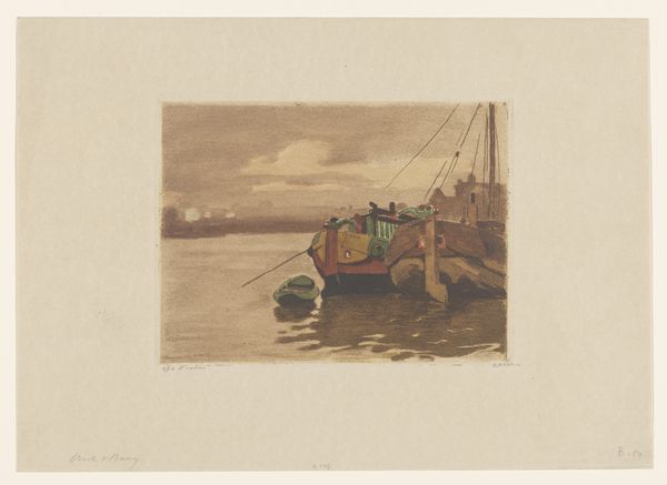 Charles Adams Platt created the print "Low Tide" using etching. Platt, who lived from 1861 to 1933, was an American artist who experienced the social and cultural shifts of the late 19th and early 20th centuries. "Low Tide" situates us in a maritime landscape, where boats rest on the exposed seabed during low tide. Platt's choice to depict this scene through the technique of etching reflects a desire to capture the subtle nuances of light and shadow. The delicate lines and tonal variations evoke a sense of stillness and quietude. But it’s also important to consider the social implications of such imagery: were these fishing boats? And if so, what class of people depended on their bounty? Does this image romanticize a working-class existence, or does it offer a glimpse into a life dependent on the rhythms of nature? Platt invites us to contemplate our relationship with the natural world.