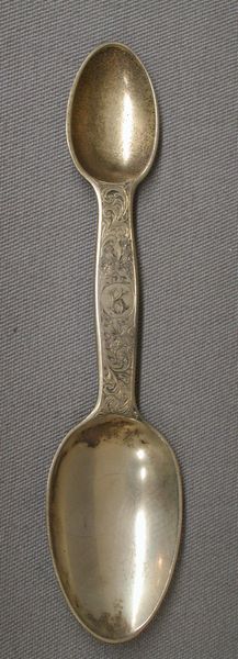 Curator: At the Metropolitan Museum, we have this delightful piece from between 1665 and 1685, an Apostle spoon by Johannes I Weber, fashioned from silver. Editor: Well, it immediately strikes me as something more than merely functional. The gleaming surface and elongated form have a certain grace. It's both utensil and sculpture. Curator: Precisely! Apostle spoons, common gifts, often celebrated religious identity. The figure at the handle's end almost certainly identifies a saint, acting as a personal talisman, a protective figure through a shared, visual vocabulary. It reinforced a collective belief system within a very personal, everyday object. Editor: It's the detail, despite its modest scale, that captivates. See the refined textures – how the light interacts with each curve and line? It reminds me of Renaissance silverware, but with that late Medieval directness. The contrast between the smooth, reflective bowl and the textured apostle creates an immediate focal point. Curator: Indeed. Beyond material finesse, we're witnessing material culture. Silver spoons, highly personal items, speak to notions of status, of belonging, as visual statements about faith and self. Gifting them represented kinship, and shared cultural touchstones. Editor: Considering that it's silver, there's this subtle sense of coolness too, which works against its devotional intention. It is intriguing that an everyday object takes on such iconic power; so much ideology compressed into form. The halo or aureole becomes just another decorative ring in the overall structure. Curator: And such cultural power persists across centuries. Seeing such an artifact provides insight into individual faith. I see it as an expression of continuity—a timeless human desire for protection through shared values, crystallized within symbolic objects. Editor: A beautiful piece, undeniably. By highlighting material relationships—the play of light, shadow, and texture—we come to realize its deeper significance. What a marvel to study such an artifact.