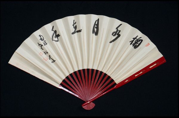 Editor: Here we have a fan from the Kangxi period by Wang Youdun, featuring a Tang poem in clerical script. The contrast between the dark blue and the gold calligraphy gives it a regal feeling. What do you make of this piece, considering its historical context? Curator: This fan, beyond its aesthetic appeal, embodies the integration of art and social practice. Fans in this period were often used as a canvas for displaying one's cultural refinement and social standing through calligraphy and poetry. Editor: So, it's a functional object that also serves as a status symbol? Curator: Precisely. The choice of the Tang poem and the clerical script, a formal style, further reinforces this. The act of gifting or receiving such a fan became a social performance, laden with meaning. Editor: That's fascinating. It really shifts my understanding of what art could be beyond just decoration. Curator: Indeed. Recognizing these elements allows us to appreciate the complex interplay between art, culture, and society in the Kangxi period.