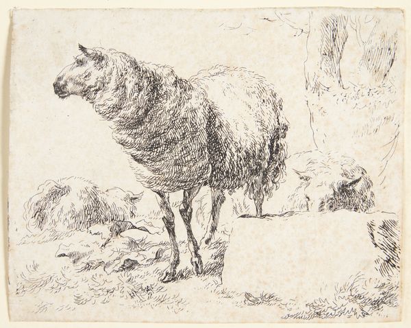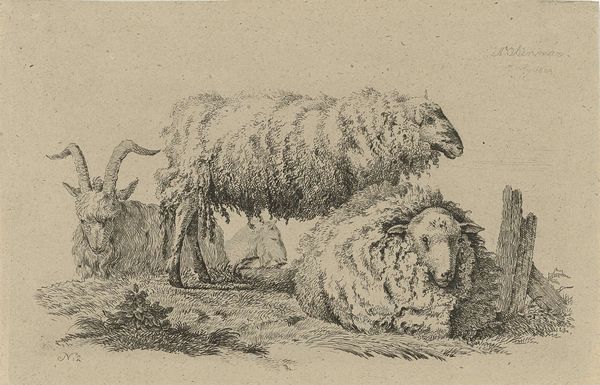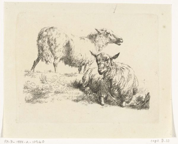 J.P. Møller made this image of two sheep as a print on paper. We do not know exactly when it was made. Møller was a Danish painter during the Golden Age of Danish Painting when artists were interested in the naturalism of everyday life, rather than history painting. The image of sheep in Denmark at the time created a narrative of rural life, but also of the national economy. The print would have been made at a time when the Danish art world, like other national institutions, was being reorganized and professionalized. The art academy, for example, played a key role in developing artistic standards and tastes. To understand this work better, we need to research the history of agriculture and land use in Denmark. As historians of art, we try to reveal the relationship between imagery and Denmark's wider social, economic, and political life.