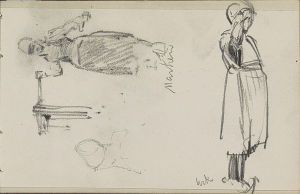 These figure and costume studies were created by Cornelis Springer, an artist born in the Netherlands in 1817. The sketches depict figures dressed in the traditional clothing of Zeeland, a province in the Netherlands with a rich cultural history. Zeeland was known for its unique folk costumes, which varied from village to village and reflected the region's strong sense of identity. These costumes often denoted social status and religious affiliations. These studies offer us a peek into the artist's process, showing us how he looked at the intersection of identity and cultural expression. The detailed drawings of the clothing invites us to think about how dress can communicate one’s sense of self. The emotional weight of these garments tells a story of community, tradition, and the individual's place within it. These sketches provide both a visual record and a reflection on the emotional and social significance of cultural markers.