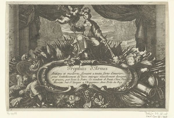 Editor: Here we have "Oproep voor het betrekken van de wacht bij de schutterij van Amsterdam door Jacob Guillot", made sometime between 1716 and 1761. It’s an engraving. I'm immediately struck by how the artist uses classical allegories to talk about…Amsterdam’s Civic Guard? What should we make of this juxtaposition? Curator: That contrast is exactly where the power of this piece resides. What we're seeing is the artist, Pieter Tanjé, leveraging the visual language of power – classical imagery – to elevate, even perhaps subtly critique, the role of the Amsterdam militia. But who gets to claim that visual language, and what are they using it for? Editor: So it’s a claim to power through visual rhetoric? But the figures seem...almost satirical in their idealization. Curator: Precisely! Consider the context. The Dutch Republic, despite its mercantile power, was often caught between wanting to project strength and needing to justify its relatively egalitarian, burgher-led society. The militia was crucial, yet also a potential site of social tension. By invoking classical heroism, Tanjé flirts with glorifying military power. Ask yourself, though: whom does such idealization truly serve, and what does it conceal about the realities of civic duty and perhaps even social inequality at the time? Editor: It’s like they’re trying to legitimize the Guard through art while almost questioning the very idea of military glorification... Curator: Exactly! We can read this piece as engaging in the complex interplay between power, identity, and representation in 18th century Amsterdam, particularly around militarism and civic identity. It really invites us to question whose voices get amplified in historical narratives. Editor: I see that it's an image that makes the viewer think about society back then, not just the people. I hadn't looked at it that way before!