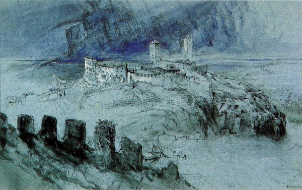 John Ruskin rendered this drawing of Itri with graphite, depicting a medieval commune crowned by its formidable castle. High atop a hill, the castle looms, symbolizing not just physical defense but also the dominion of power, much like citadels in ancient Greek art. These fortified structures echo through time. Think of the Tower of Babel, a potent symbol of human ambition, or the many castles dotting the European landscape. They all tap into our collective memory, stirring deep-seated feelings of awe, security, and, perhaps, fear. This impulse to build upwards towards the heavens, to create lasting monuments, embodies a very human desire to transcend our mortal existence. Here in Itri, Ruskin captures more than just a town; he encapsulates a timeless urge to establish our presence, to defend it, and to leave a lasting mark on the world, resonating across centuries.