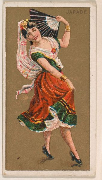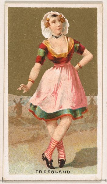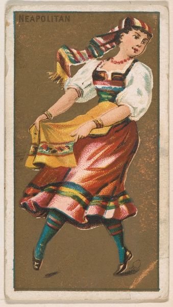 This chromolithograph, "Schwyz", was one of a series of cards issued by the American tobacco company, William S. Kimball & Co. In the late 19th century, the advent of color printing enabled mass-produced images to circulate widely. This card, part of a series called "Dancing Girls of the World," represents a romanticized view of global cultures. We see a woman in traditional Swiss attire set against an idealized mountain landscape, a visual shorthand for the picturesque and "authentic." The image creates meaning through visual codes. The dancer's costume signifies a particular regional identity, while the act of dancing suggests celebration and tradition. But we should consider the politics of imagery here. How does the commodification of culture in this context reflect broader imperial attitudes? What does it mean to represent foreign cultures as consumable images? Understanding this image means diving into the social and economic conditions of the late 19th century, including the rise of consumer culture and the expansion of American industry. Archival research into trade cards and advertising ephemera can tell us more about the cultural values circulating at the time.