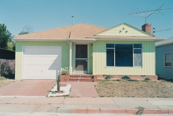 Henry Wessel captured "Real Estate #91117" with a camera, presenting a stark, sun-drenched view of suburban architecture. The composition is dominated by the flat planes of the house, its sharp triangular roof, and the almost clinical white facade. The light, bleached of warmth, flattens the perspective, turning the scene into an exercise in geometric forms. Wessel's choice to present this mundane scene is far from accidental. He prompts us to consider the semiotics of suburbia. The house, with its closed windows and blank garage door, becomes a signifier of privacy, perhaps even isolation. The patch of pink flowers seems almost subversive, a challenge to the rigid geometry. Ultimately, Wessel's photograph invites contemplation on the structures that shape our lives. It underscores how even the most ordinary scenes can be deconstructed to reveal the underlying codes and values of our culture, challenging us to reconsider our relationship to the spaces we inhabit.