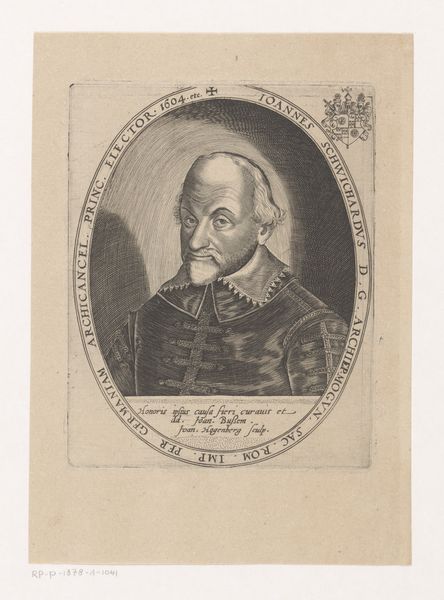 This is J.B. Martin's portrait of Emperor Joseph II, an engraving whose dimensions are remarkably intimate. The composition is structured around an oval frame that neatly encapsulates the Emperor, softened by a laurel wreath, against a gridded background, creating a layered effect that both confines and elevates the subject. Below, symbols of power—crowns, scepters, and flags—are meticulously arranged on a plinth, serving as tangible metaphors for his authority. The use of line and texture is masterful; fine hatches create gradations of light and shadow, giving depth to the figure and objects. Martin's technique invites us to consider the interplay between representation and power. Each element, carefully rendered, contributes to a constructed image of imperial might, yet the engraving's modest scale suggests a democratization of the ruler's image, making it accessible. Ultimately, this portrait is not just a likeness but a complex interplay of form and symbolism that challenges our understanding of authority and representation.
