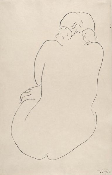 Jean-Louis Forain’s study of a nude woman is a drawing composed with delicate pencil strokes on a pale background. The simplicity of the form and its placement towards the right side of the composition evoke a sense of intimacy. Forain's strategic use of line is central to the drawing's semiotic structure. With minimal strokes, he suggests the shape of the body. These lines serve as signifiers, pointing to a deeper cultural understanding of form and beauty. The pose, slightly turned away, suggests a contemplation of classical ideals through a modern lens. The texture of the paper and the varying pressure of the pencil create a subtle interplay of light and shadow. This invites viewers to consider how the material qualities of the artwork itself contribute to its overall meaning. The figure is both present and elusive, challenging fixed notions of representation and engaging with broader philosophical questions about perception and existence.