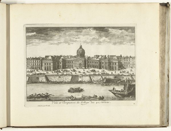 Pieter Schenk created this print, "View of the Court in Dieren from the rear pond," around the turn of the 18th century, using etching. The work presents a symmetrical vista defined by the stillness of the pond and the geometric lines of the landscaping. This formal order, a hallmark of Dutch garden design, imposes a sense of control over nature. The composition invites a semiotic reading where the pond represents reflection and contemplation, while the structured gardens symbolize societal order. The figures in the foreground, seemingly at leisure, underscore themes of privilege and the contemplative life afforded by such cultivated spaces. Schenk’s delicate etching technique captures the subtle gradations of light, giving depth to the scene. It reminds us that even seemingly straightforward landscape views are constructed, reflecting cultural values and philosophical ideals about humanity's place in the world. The image prompts ongoing contemplation, suggesting that its meaning is not fixed but evolves with our understanding.