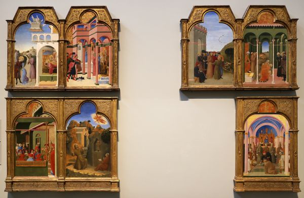 Editor: We're looking at "Presentation at the Temple" by Ambrogio Bergognone, painted around 1494, an oil on panel work housed in the Louvre. The formality of the figures gives it a solemn mood. What can you tell me about it? Curator: This work isn't just a religious scene, it's a window into the social and political landscape of Renaissance Milan. Consider how the artist chooses to represent the figures – who gets to be central, who is relegated to the side? The virgin and child are shown, as per usual, surrounded by what? Mostly men. Who seems to be allowed access to divine events, and who seems like a mere spectator. Does that seem familiar to you? Editor: I see what you mean. It feels like the composition reinforces established hierarchies. How does the style play into that? Curator: The Early Renaissance style, with its emphasis on order and idealized forms, presents a world where everyone has a place, a role in this divinely ordained order. Where women lack autonomy. Even Mary in her motherhood is subject to male blessing. Can we consider then what "divine" might really represent? Editor: That makes me look at it differently. The Renaissance emphasis on humanism—shouldn't that give more agency to women? Curator: Precisely! This tension is crucial. Are Renaissance ideals being fully realized here, or are traditional power structures subtly reasserting themselves through art? What happens when the ideals of "rebirth" meet ingrained social conventions regarding gender and power? Editor: So, it’s not just a religious painting; it's a commentary on the evolving role of women in society. Curator: It certainly can be interpreted that way, among others. By interrogating those social constructs as represented through Bergognone’s choices, we unlock a richer understanding of this historical moment. Editor: That is true. Thinking about art as an active participant in social discourse has deepened my perspective on this work. Thank you.