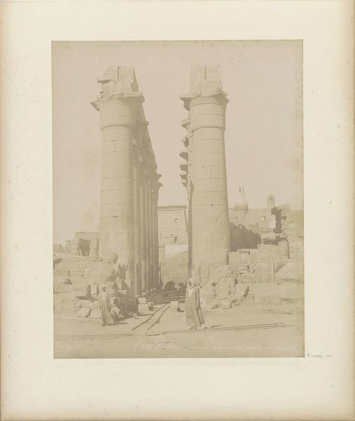 Félix Teynard captured this photograph of the ruins at Erment in Egypt, revealing the fragmented remains of the temple with its powerful columns. The columns here are more than just architectural features; they are potent symbols that resonate across cultures and epochs. Consider the Greek temple columns, or even the pillars of medieval cathedrals: these vertical forms speak to humanity’s enduring aspiration to reach the divine. Over time, these symbols evolve. The unadorned strength of ancient Egyptian columns contrasts with the ornate details of Baroque architecture, mirroring how societies redefine their spiritual and cultural identities. This photograph offers an emotional insight into our shared cultural memory. It reminds us that the impulse to build, to create enduring monuments, stems from a deep, often subconscious, desire to defy mortality and connect with something greater than ourselves. The cyclical progression of these symbols is clear. They resurface, evolve, and take on new meanings, yet the essential human impulse they represent remains constant.