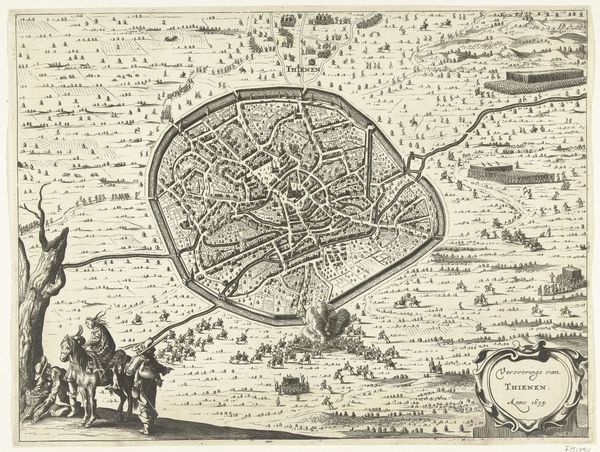 Claes Jansz. Visscher created this print of the siege of Maastricht in 1632. Look closely and you’ll notice how the composition is structured around a bird's-eye view, offering an almost abstract rendering of the landscape below. The meticulous detail of the lines creates a rich tapestry of shapes, from the geometric precision of the fortifications to the organic sprawl of the city itself. The river acts as a sinuous spine, dividing and connecting the elements of the scene. What's fascinating is how Visscher uses perspective, not just to represent space, but to flatten it, turning the siege into a kind of symbolic tableau. The interplay between the dense, detailed areas and the open spaces invites us to contemplate the relationship between order and chaos, strategy and chance. It's a visual language that speaks of power, knowledge, and the drama of human conflict.
