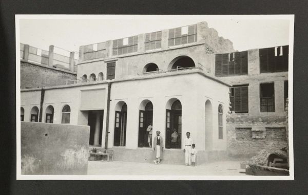 Curator: This albumen print, titled "Exterieur van het Bardopaleis in Tunis," dates from somewhere between 1880 and 1900. What strikes you first? Editor: Well, immediately I'm drawn to the stark materiality of the image itself. The texture of the aged print, the tonal range rendered by the albumen process… it evokes a tangible sense of history. It speaks volumes about photographic techniques of that era. Curator: Indeed. The very nature of photography then, with its complex chemistry and equipment, shaped the vision. How does it situate itself historically for you? The Bardo Palace has served diverse purposes and populations… Editor: Exactly. The Bardo Palace stands, documented in shades of sepia. Its imposing facade of brick, stone, or perhaps even concrete suggests the labor of many hands – their skill, their time, their lives intricately interwoven with the physical manifestation of power that the palace represents. Curator: I agree that we need to acknowledge the unseen labor within such representations of power. Let’s remember that in 1881, Tunisia became a French protectorate, adding layers of colonial complexity to the palace’s role. Editor: Precisely. It makes me question the conditions under which this photograph was created. Was it a commissioned work, and for whom? Who held the power in this exchange between photographer, patron, and place? What were the dominant materials of local art at the time? Curator: Those are vital questions. Think of the possible viewpoints – the photographer's gaze, the implied consumer's desires, the palace's symbolic weight within a changing political landscape. Even the framing positions this architecture. Editor: And the labor inherent in this artistic documentation must have demanded some consideration, especially in the way that a print makes even architectural grandeur somehow graspable, packaged, maybe even appropriated. The material itself carries that story, literally. Curator: Yes, it shifts the paradigm to understand all art within broader economic structures of making and consumption, which opens interesting historical and political conversations. Editor: It does. It reminds us that the beauty of art can, and must, provoke rigorous contextual questions about labor, social dynamics and historic realities. The image itself embodies and also exceeds the materials, becoming a question of ethics. Curator: It has changed the way I look at the photograph already. Thank you for your insights.
