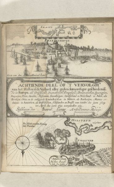 This is Claes Jansz Visscher’s title page from 1624 for the second volume of “Historisch Verhael,” made with etching and engraving. During the 17th century, the Dutch Republic was a major player in global trade and exploration. Visscher's detailed imagery reflects a world rapidly changing through exploration, trade, and conflict. The book promises tales from Europe, Asia, Africa, and America, presenting a world stitched together by Dutch seafaring ambition. This work exists within the context of the Dutch Golden Age, a time of unprecedented economic and cultural expansion. It reflects both the excitement of discovery and the harsh realities of colonization. Consider how Visscher's images might have shaped the worldview of his audience. Did they inspire a sense of national pride, or perhaps a moral unease about the human cost of empire? This title page offers not just a gateway to stories of the past, but also a glimpse into the complex and often contradictory values of a society on the cusp of modernity.