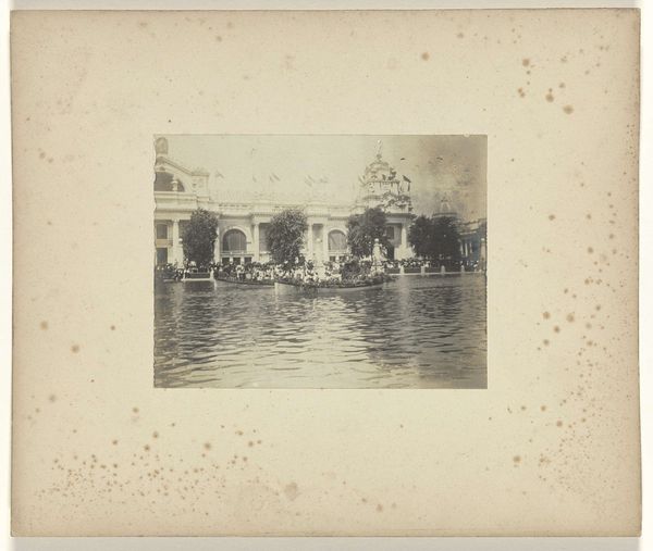 Editor: This is an interesting photograph, dating to around 1889. It shows the illuminated fountains and entrance to the Palace of Industry during the World's Fair. It seems to blend photography with sculpture. It’s quite grand, but also a little… ghostly. What stands out to you? Curator: The photo immediately speaks to the complex narratives of power, progress, and representation inherent in World's Fairs. Consider the era: 1889, a time of immense colonial expansion and industrial advancement. This Palace of Industry, with its "illuminated fountains," wasn't just a display of technological achievement; it was a celebration of Western dominance. Editor: So, you're saying there's more to it than just pretty fountains? Curator: Absolutely. We need to think about who was included and, more importantly, who was excluded from this vision of progress. These fairs often exoticized and misrepresented colonized populations, reinforcing racist ideologies. Who benefits from this image, and whose labor and resources made it possible? The very act of illuminating these fountains, signaling technological mastery, casts a long shadow on those without such "progress." Editor: That makes me look at it very differently. I hadn’t considered that. It’s easy to get caught up in the beauty of it. Curator: It’s precisely that beauty that can be deceptive. By interrogating these historical images, we can better understand the lasting legacies of colonialism and inequality that persist today. What steps can we take to critically analyze this past? Editor: I guess I will think twice before accepting any image as just “beautiful” from now on. Thank you, I have learned so much from you. Curator: It’s crucial to always be curious and questioning; that's the power of engaging with art history!