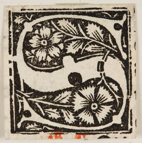 Editor: This is "Initial S," artist unknown, residing here at the Harvard Art Museums. It looks like a woodblock print, maybe for illuminating a manuscript? What do you see in its simple form? Curator: The stark contrast points to a fascinating production process. Think about the labor involved in carving that block. The material itself, likely a common wood, speaks to widespread accessibility. How does its potential use in mass production affect its value as art? Editor: I hadn't considered the labor involved; it does seem like a very involved process. Curator: Exactly. It also makes us question the separation between craft and fine art. Both involve skilled labor and material transformation. It asks us to reconsider our definitions of art. Editor: That's a fresh perspective, I’ll think of that again!