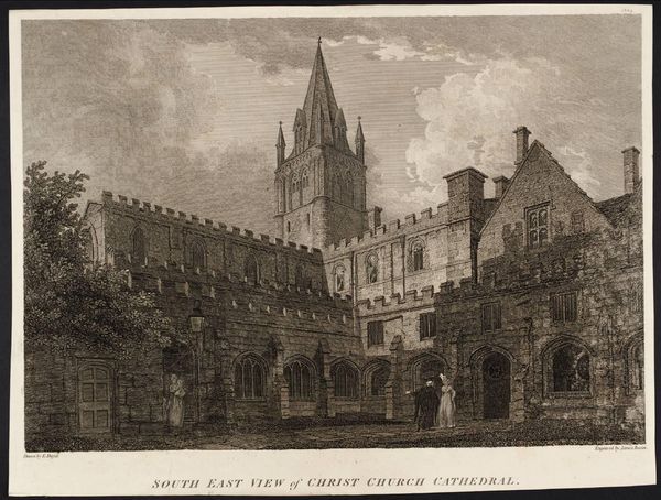 Editor: So, this is Charles Meryon's etching, *La Tour de l'Horloge, Paris* from 1852. The level of detail is just astonishing, like you could wander right into old Paris. There’s this… somber, almost haunting atmosphere. What strikes you about it? Curator: Haunting is the perfect word! I always feel Meryon captured a Paris on the cusp of disappearing. See how the light catches the Clock Tower? It's defiant, yet surrounded by scaffolding suggesting a city constantly under construction. It whispers of history and relentless change, almost like he felt he needed to create this artistic snapshot before time swept this Paris away forever. I feel the artist must have observed the cityscape daily for a long time to produce such rich detail using printmaking techniques. Do you feel a strong sense of light? Editor: Definitely, the highlights really pull you in. I'm curious about the Romanticism label. It's not exactly the sweeping landscapes I usually associate with that style. Curator: True! Think about Romanticism's obsession with the past, with emotions, and even the grotesque. Meryon transforms the city into a stage for these feelings. It is as if he took what was gothic in his time and imagined all it was, not what is seemed. Perhaps Meryon emphasizes the monumentality to celebrate the human accomplishment while questioning if change benefits civilization. Are those turbulent clouds I spy on the horizon or perhaps clouds from some fire down the river? The overall atmosphere of impending doom. Editor: That makes sense. I was so caught up in the detail, I missed the emotional weight. Thanks, I see so much more now. Curator: And I admire your eye for that exquisite detail. We've both unlocked another layer in this complex print, haven't we? It's like unlocking a time capsule from the banks of the river Seine.