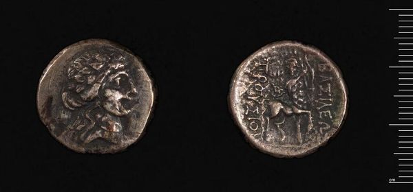 Curator: This is a coin from Syracuse, Sicily, a small artifact connected to Hiketas, who ruled as tyrant there in the 3rd century BCE. Editor: It’s incredible, isn't it? To hold something so small that represents the ambitions, power, and perhaps the anxieties, of a ruler. I get a sense of a civilization grappling with how to project its image. Curator: Absolutely, and the coin itself is a carefully constructed piece of propaganda. On one side, you see the head of Arethusa, a nymph associated with Syracuse. The other side bears an image of a chariot. Editor: It's like a tiny stage for Hiketas’s aspirations. I wonder, did the people of Syracuse view this coin as a symbol of stability, or perhaps a reminder of autocratic power? I can only imagine the stories these travelled through. Curator: Coins are always charged with political and social weight, offering us a window into the values and self-representation of a society at a particular moment. This little piece is a great reminder of just that. Editor: Indeed. It's a powerful testament to how art can function as a reflection of, and a participant in, history.