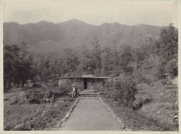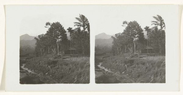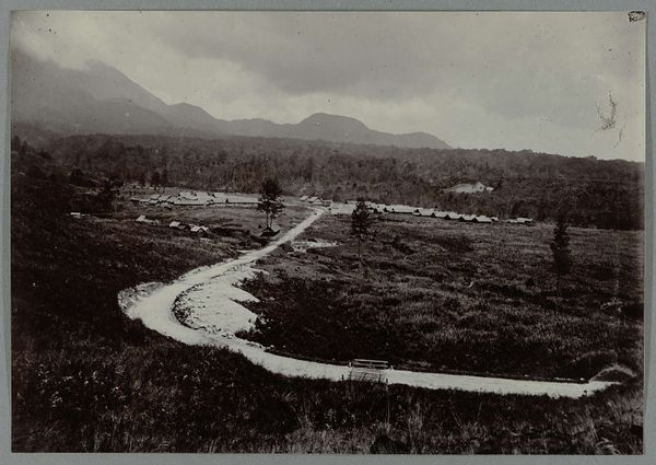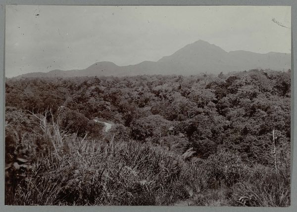 Editor: So, here we have an intriguing landscape, "Aanleg van de weg bij de Boer ni Poepandji," which translates to "Construction of the Road at the Farmer ni Poepandji's Place." It's dated sometime between 1903 and 1913. Given its muted tones and somewhat blurry quality, it seems likely this work was realized as a vintage print, maybe a photograph? What jumps out at me is the strong contrast between the dense foliage and what looks like active construction. How do you interpret this work? Curator: That contrast is precisely what captures my attention as well. The photograph, presumably taken en plein air, depicts a road being carved through a lush landscape. The implications here are substantial; think about the Dutch colonial presence and their infrastructural projects in the early 20th century. Who were those impacting, and whose labor was involved? What sort of landscape was this before it was transformed, ostensibly to further commercial interests? Editor: I see. So, the "progress" we're viewing isn't neutral; it has socio-political dimensions related to colonialism. Were these scenes commonly documented, or was there something unusual about capturing this specific moment? Curator: Images like this were sometimes used to promote the idea of bringing “civilization” and advancement through technology to colonised regions, subtly reinforcing notions of European superiority. But it's not always that straightforward. Think about the perspective from the photographer's point of view. Why this moment, why here? Perhaps it was meant to emphasize the grand engineering efforts, or simply a reflection of the changing landscape. But without context, that’s simply not enough to work on to give the viewer the full history here. Editor: That gives me a lot to consider. I initially saw it as just a landscape, but understanding its historical context as you explained unveils layers of meaning related to colonial impact and cultural perspectives that is pretty incredible, right? Curator: Exactly, It transforms a seemingly straightforward image into a potent visual commentary. Recognizing art’s place in broader cultural narratives adds profound richness.