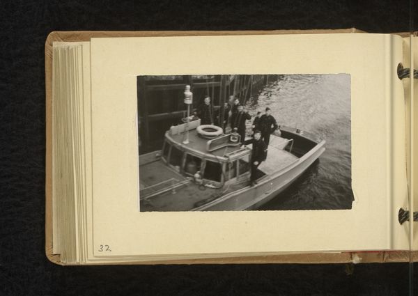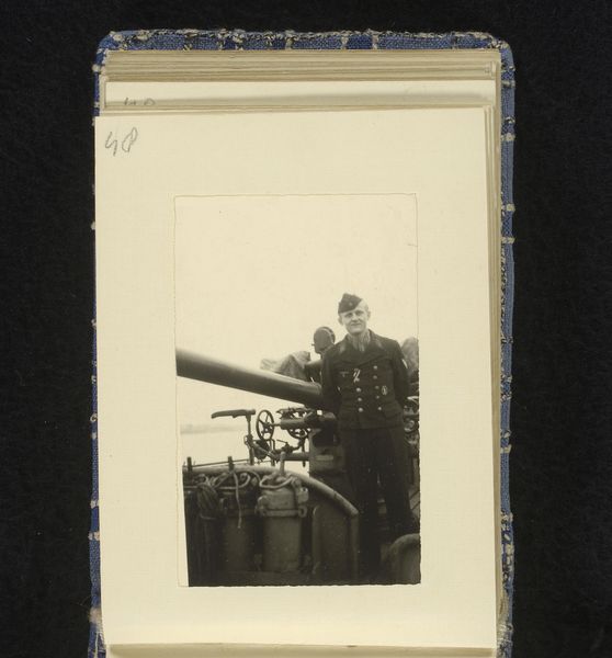 Editor: So this gelatin-silver print, titled "Groepsfoto" or Group Photo, was taken between 1940 and 1945, according to the Rijksmuseum's records. It’s…well, it's a snapshot of naval officers. It feels very staged, yet intimate somehow. What can you tell me about the context in which photographs like this were made and displayed during wartime? Curator: This image, likely taken during the Nazi occupation of the Netherlands, reveals several layers when considered through a socio-historical lens. Ask yourself: Who commissioned the photograph? Who was the intended audience? Wartime photographs, particularly group portraits of military personnel, served multifaceted purposes. They boosted morale, solidified group identity, and functioned as propaganda. The very act of carefully posing these officers, freezing them in a moment of camaraderie, hints at a desire to project strength and unity amidst conflict. The gelatin silver print process made the image reproducible; how do you think this affected its distribution? Editor: Well, the fact that it’s reproducible means it could have been circulated widely; perhaps in newspapers, maybe to family back home, or kept as a personal memento? Was there censorship or any regulation of images such as this in the Netherlands at the time? Curator: Precisely. Photographic images in occupied territories became carefully monitored sites. So consider how the men wanted to be perceived in a political context where what they stood for was questionable. Now, also observe that there are awards that they're wearing in plain sight. So again, in thinking about social context, what might this mean during WWII? Editor: That is fascinating! I hadn't considered the levels of subtle control and projection at play. Curator: These small details bring so much insight. Each image provides narratives of history if you investigate who, what, why and where these photographs exist.
