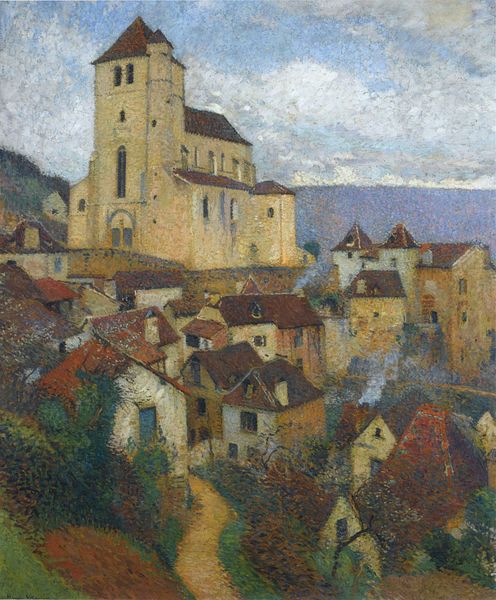 Henri Martin painted "Maisons À Saint-Cirq-Lapopie" during a period of significant social and artistic change in France. Martin, deeply rooted in the traditions of French painting, was also influenced by the shifting cultural landscape. In this painting, Martin captures the essence of Saint-Cirq-Lapopie, a village perched high above the Lot River. The scene, rendered in the pointillist style, evokes a sense of timelessness, yet it also speaks to the human presence interwoven with the natural environment. We see houses, built by human hands, nestling into the landscape. The painting also reflects a yearning for connection with the land. Martin, like many artists of his time, sought refuge in rural settings, drawn to the perceived authenticity of peasant life, finding in it a respite from the alienation of modern urban existence. "Maisons À Saint-Cirq-Lapopie" invites us to reflect on our relationship with the places we inhabit and the traces we leave behind.