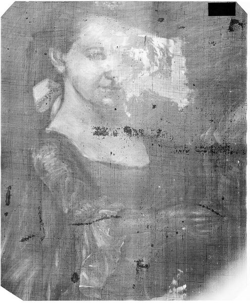 Editor: Here we have an X-radiograph of "Lucy White Thaxter," after William Page. It's ghostly, almost like a photographic negative. What strikes you about it? Curator: It's fascinating how this image, meant to reveal hidden layers, also speaks to visibility and erasure. How might Lucy's identity as a woman in that era intersect with the act of being both portrayed and x-rayed? What narratives are unveiled, and what histories remain unseen, in this process? Editor: So, it's about power dynamics? Curator: Precisely. Consider how scientific methods, like X-rays, can also be tools for examining societal structures, revealing underlying biases and power imbalances within portraiture and representation. Editor: That's a new way to look at it. I see it now.