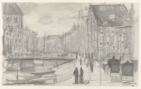 Adolf le Comte created "Schuit in een stadsgracht" using graphite and watercolor, capturing a boat on an urban canal. Le Comte, working in the late 19th and early 20th centuries, lived in a time of rapid industrialization and urbanization in the Netherlands. The artwork presents a narrative of labor and leisure, subtly intertwined. The figures near the boat might be workers or travelers, their interactions hinting at the social fabric of the city. The canal, reflecting the architecture, suggests themes of identity and connection to place, as waterways often function as the veins of a city, connecting different communities and social strata. Le Comte captures a moment of quiet activity against an urban backdrop. In its portrayal of daily life, the artwork encourages viewers to reflect on their own relationships with urban environments and the human stories unfolding within them.