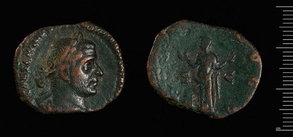 Curator: This ancient coin of Gangra-Germanicopolis, bearing the effigy of Caracalla, weighs just over 11 grams and resides here at the Harvard Art Museums. Editor: Gosh, it looks like it’s been through a lot, doesn't it? Like holding history in your hand...if it wasn’t behind glass. Sort of worn, but with a strange, enduring dignity. Curator: Absolutely. These coins were more than just currency. Minted during Caracalla's reign, they served as propaganda, disseminating his image and projecting imperial power across the Roman Empire. Editor: It’s incredible to think of this little thing traveling far and wide, seen by so many different eyes. I wonder what it bought, what stories it could tell if it could talk. Curator: Exactly. The imagery of Caracalla, even on such a small scale, had a powerful impact, shaping perceptions and reinforcing his authority across diverse populations. Editor: It makes you wonder how much of our own currency is about power and perception, more than just the exchange of goods. Curator: Precisely. This coin, in its modest way, reminds us that art and power have always been intertwined. Editor: And also, the enduring connection to the past. It is something to contemplate.
