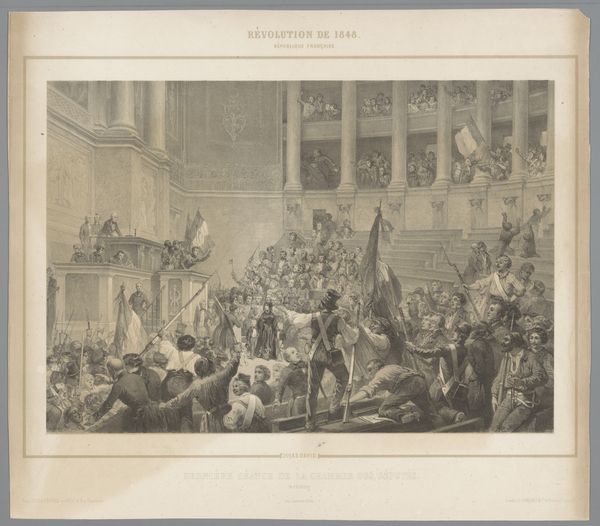 Editor: This engraving, possibly from between 1796 and 1799, depicts "The Beheading of Jean-Bertrand Féraud during the uprising of 20 May 1795 against the National Convention" by Isidore-Stanislas Helman. The scene is chaotic and crowded. It feels like a raw and brutal moment captured. What kind of historical context informs your understanding of this image? Curator: This print offers us a chilling glimpse into the French Revolution, doesn't it? It freezes a moment of intense political turmoil and violence. The National Convention was itself a site of incredible conflict. Seeing Féraud’s execution visualized through this neoclassical lens… well, it's impossible to ignore the power dynamics at play here. Who had the power to represent the narrative, and whose voices were suppressed in the process? Consider the image's Neoclassical style; what purpose might this choice of style have served in representing such a barbaric act? Editor: It's almost like the clean lines of Neoclassicism are trying to impose order on a fundamentally disordered event. Did the artist have a political agenda? Curator: That's a great observation. Indeed, Helman was working in a politically charged environment, and images like these played a crucial role in shaping public opinion and justifying political actions. Visual representations, particularly those circulated widely through prints, had an impact on constructing collective memory. We must consider, also, whose stories are deemed worthy of artistic representation. How might this image perpetuate or challenge existing social inequalities of the time? Editor: So, it’s not just a historical record, but a constructed narrative embedded within a specific socio-political context. I hadn’t thought about the way Neoclassicism itself becomes a political statement here. Curator: Exactly. And remember, art doesn't exist in a vacuum. Analyzing art from this period compels us to investigate broader cultural narratives that touch upon revolution, justice, and the fragility of political structures. I'm so glad you raised this artwork as a perfect example. Editor: I learned that examining it through a historical lens illuminates not only the event itself but also the way power dynamics influence its artistic representation.