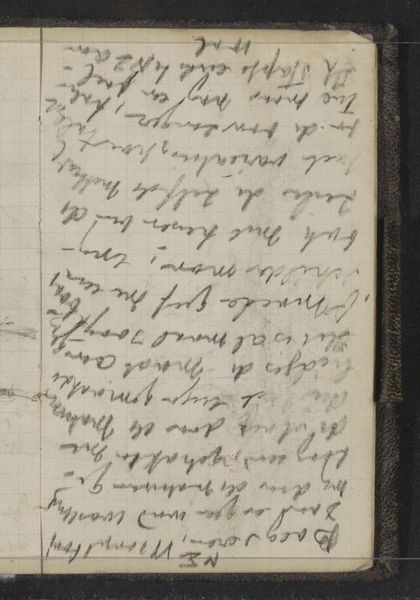 Curator: This page is taken from Louis Apol's "Reisverslag van September 1880," dating back to the 1880s, and held here at the Rijksmuseum. Apol captured these observations in ink and watercolor on paper, a fleeting glimpse into his artistic process. Editor: Wow, it feels like stumbling upon someone's intimate thoughts. All those scratchy handwritten notes over a very faint grid...like reading a secret. I feel the rush of being a silent observer to an artistic mind. Curator: Absolutely, that intimacy stems from its format as a travelogue. We need to situate Apol, though recognized for winter landscapes, within the context of 19th-century travel culture and the burgeoning interest in representing the environment. Who gets to travel? Whose vision are we seeing? These are critical questions. Editor: Right. And in the raw quality of these quickly scribbled observations. It’s unfiltered—as if he's just trying to keep up with his own ideas. And it makes me want to ask: did that sense of urgency make him see and paint differently? Or maybe, if he has paused for a longer, he has painted them more beautiful as landscapes? Curator: His detailed notes on weather—"windety dome hot plochy"—capture immediate environmental conditions, highlighting the relationship between climate and representation. I like how this focus shifts how we frame landscape art traditionally; here, the socio-political aspects interweave inextricably with art history. Editor: To be able to time-travel back there, standing shoulder-to-shoulder with Apol, both of us squinting against the light while rapidly trying to translate the scene before our eyes—now that’s something. It makes art history feel immediate, you know? Curator: Yes. When contextualized with that awareness, examining art historical narratives is no longer simply about aesthetics or biographical details but how the period, its biases, expectations shaped Apol's perspective as a male, Western European artist. Editor: For me, this peek into a creative travel diary ignites something. I feel like running with a sketchbook now. What I am waiting for? I need to do it before light changes completely.
