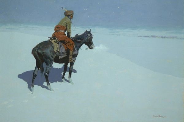 Frederic Remington made "A Reconnaissance" using paint on canvas, and the muted color palette gives the whole scene a quiet, contemplative vibe. Looking closely, you can almost feel the cold seeping in. The way the snow is rendered with thick, visible brushstrokes; you can see how Remington applied the paint in layers, building up the texture to mimic the uneven surface of a snow-covered hill. The brushstrokes capture the way light dances on the snow, creating a sense of depth and realism. The figures themselves are more loosely defined, which adds to the feeling of mystery and uncertainty. The way Remington uses color here reminds me a lot of Whistler. There’s a similar sensitivity to atmosphere and mood, a willingness to prioritize feeling over strict representation. And like Whistler, Remington seems interested in capturing a specific moment in time, a fleeting impression of light and atmosphere. Ultimately, this painting embraces ambiguity, inviting us to bring our own interpretations and experiences to the scene.