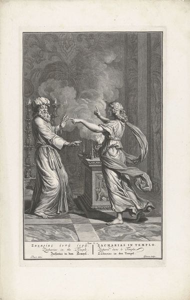 This title page for the Europische Mercurius of 1718 was made by an anonymous artist using engraving, a printmaking technique that dates back to the 15th century. The process involves using a tool called a burin to carve lines into a metal plate, which is then inked and pressed onto paper. The material properties of the copper plate allow for fine, precise lines, giving the image a crisp, detailed appearance, with the contrast between the dark ink and the light paper creating a striking visual effect. Engraving was a highly skilled and labor-intensive process, often associated with commercial printing. The widespread availability of printed material contributed to the growth of a public sphere, and helped to shape public opinion. The image itself combines allegorical figures with contemporary portraiture, reflecting the cultural values and social structures of the time, and blurring the boundaries between craft and fine art. By understanding the materials, tools, and techniques involved in the making of this print, we can gain insight into the broader social and cultural context in which it was produced.
