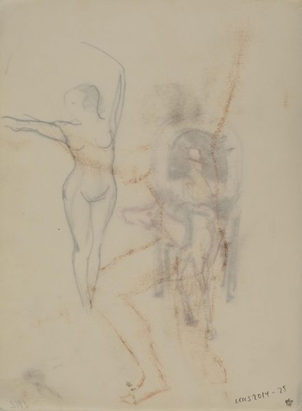 Editor: We're looking at Karl Isakson's "Udkast til 'Sif'," made between 1904 and 1909, a pencil drawing on paper. It's quite delicate, almost ethereal. The lines are so light. What can you tell us about it? Curator: Well, it’s fascinating to consider the raw materials and process here. A simple pencil, a readily available tool, and paper, likely mass-produced even then. Notice how Isakson isn’t obscuring the process. The sketch is the art itself, the labor laid bare. Consider the social context – early 20th century, industrialization. Isakson chose to work with simple tools rather than embrace mechanized modes of production for this initial idea. Why do you think that is? Editor: Maybe to keep it personal, connected to the subject, or perhaps a rejection of industrial art production? Curator: Exactly. And what of the “high art” aspect versus “craft?” Traditionally, a sketch is subservient to a finished painting or sculpture. But here, the sketch *is* the work. It challenges that hierarchy, elevating the labor of preliminary work, making us consider the act of making as valuable as the end product. Editor: So it's less about the perfect final form, and more about capturing the process of creation? Curator: Precisely. Consider the role of drawing at that time – academic exercises? Commercial reproductions? Isakson’s work sits between. Editor: This perspective shifts how I view sketches. Now I see the value in its raw and tactile qualities! Curator: Absolutely. By focusing on the means of production, the material, the labor, we gain insight into the artist’s intention and challenge preconceived notions about art’s value.