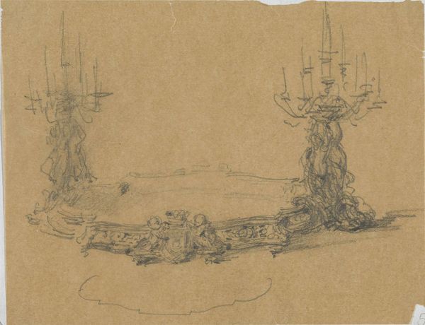 Henri Cameré sketched "Design for a shell-shaped vessel and a supporting figure" with graphite, capturing the essence of classical form and the weight of labor. There's something deeply resonant about the figure’s posture, isn’t there? We see a human form bent under the weight of its task, almost in supplication, which speaks volumes about the intersection of labor, class, and the human body. This recalls the tradition of the caryatid, yet invites us to reflect on the realities of physical labor. The sketch, though simple, hints at the power dynamics embedded in artistic representation and production. We consider the history of labor as the artwork asks us to contemplate who bears the weight—both literally and figuratively—in our societies, and who gets to create. It's a quiet yet profound moment of recognizing the bodies and the histories that often remain unseen.