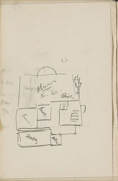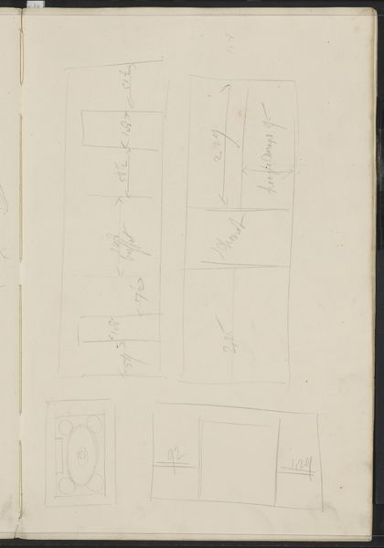 This is Reijer Stolk’s, "Plattegrond of Model," a pencil drawing held at the Rijksmuseum. The drawing presents two diagrams, each featuring a cross-like structure composed of rectangles, accompanied by numeric annotations. The composition's stark simplicity invites us to consider its underlying structure. Stolk uses basic geometric forms to investigate spatial relationships. The repetition of the cross motif suggests a focus on symmetry and balance. The numeric annotations introduce a layer of coded meaning, hinting at measurements and proportions critical to the diagram's function. In structuralist terms, we can read the drawing as a system of signs. The lines, shapes, and numbers each act as signifiers, pointing to a signified concept, perhaps a building plan or a mechanical design. Stolk’s sketch, therefore, is not just a representation but a conceptual framework, a visual language that seeks to clarify and define. This piece operates within a broader discourse of representation, where the act of sketching becomes an act of inquiry.