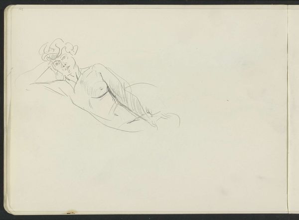 Isaac Israels made this sketch of a woman in his sketchbook, likely with graphite. There’s a nervous energy to these lines, aren’t they great? The artist seems less concerned with capturing a likeness and more interested in the act of drawing itself. You can almost see Israels’ hand moving across the page, feeling out the forms. I love the way he uses hatching to create shadows, especially around the woman’s face and hair. The texture is so immediate, so present. It’s like you’re right there in the room with the artist, watching the sketch unfold. Notice how the lines vary in thickness and pressure, giving the drawing a real sense of depth and dimension. Look at those eyes, they’re just a few scribbled lines, but they convey so much. It reminds me a little of Manet's quick, impressionistic portraits. Ultimately, this sketch embodies the idea that art is a conversation, always evolving and questioning.