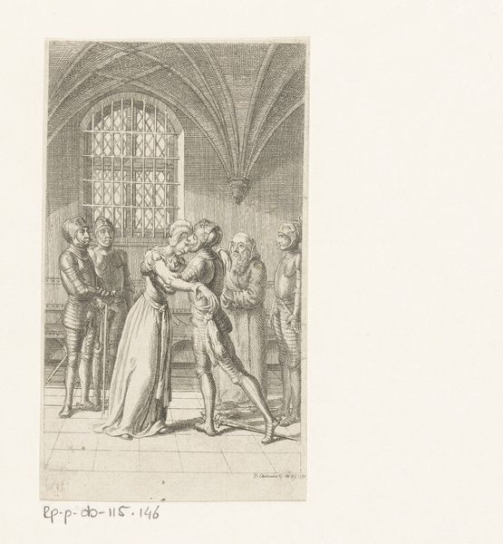 Daniel Nikolaus Chodowiecki made this tiny print using etching, a printmaking technique, sometime in the 18th century. Look closely, and you’ll notice the etched lines themselves vary in thickness and direction to build up the image. This wasn’t a quick process, but a labor-intensive one, involving careful work with acid to bite into a metal plate. The matrix would then be inked and printed onto paper. In its day, etching was a relatively efficient way to reproduce images. That was important, because prints like this were essentially the mass media of their time. Beyond the technical skill involved, this print also reflects the social context in which it was made. Chodowiecki was active during the Enlightenment, and prints were often used to disseminate ideas and stories to a wider audience. “Maria von Sundhain Shakes the Hand of One of the Brothers” speaks to a growing reading public, hungry for images, but also a society increasingly fascinated by emotional encounters.