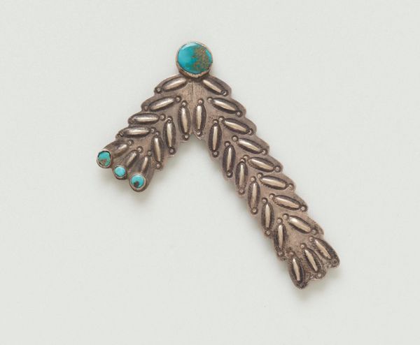 These collar points were crafted by a Navajo artist from silver and turquoise. The Navajo, or Diné, people, located in the Southwestern United States, have a rich history of silversmithing. The Diné artistic practices reflect the adaptation of European metalworking techniques. During the 19th century, the Navajo learned these skills and combined them with their own aesthetic sensibilities to create jewelry and other decorative items. The turquoise gemstone is particularly significant, holding spiritual meaning and symbolizing protection and well-being. The use of silver and turquoise was not only aesthetically pleasing but also served as a form of cultural expression, preserving identity through a blend of indigenous heritage and introduced materials. Historians study objects like these collar points, using archival research, oral histories, and material analysis to uncover the complex web of social, cultural, and economic forces that shaped their creation.