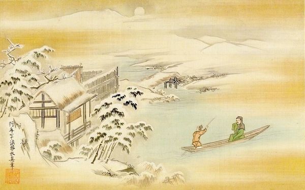 Editor: This is Kano Tsunenobu's "Eight Views of Xiao Xiang." It's undated, done in ink and color on paper. I'm struck by how dreamlike it feels; the landscape seems to float. What stands out to you? Curator: The mist, certainly. It's not just atmosphere; it's a veil. Notice how the bridges, mountains, and temples emerge and recede. Does that suggest anything about memory or our connection to the past? Editor: Perhaps the way memories fade and reappear? Curator: Precisely. The artist isn't just depicting a place, but evoking a feeling, a shared cultural understanding of beauty and transience. What do you take away from the title itself? Editor: That these views are supposed to be important, worth capturing. It makes me think about how landscapes carry meaning. Curator: Indeed. And how artists use symbols to tap into those meanings, connecting us to a larger narrative. This piece really makes me think of the power of imagery. Editor: Me too! I never thought about mist carrying so much meaning.