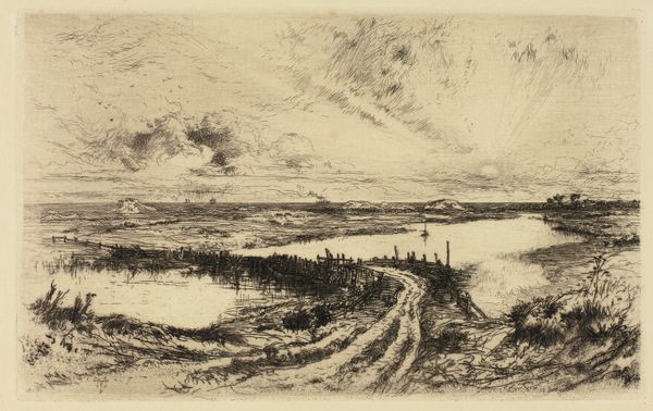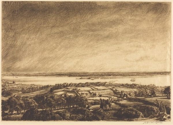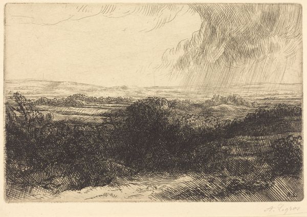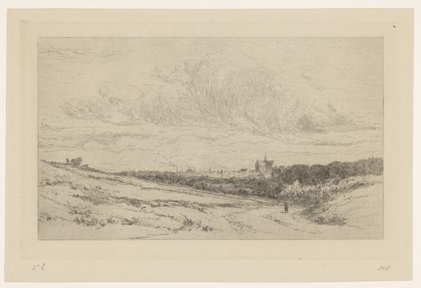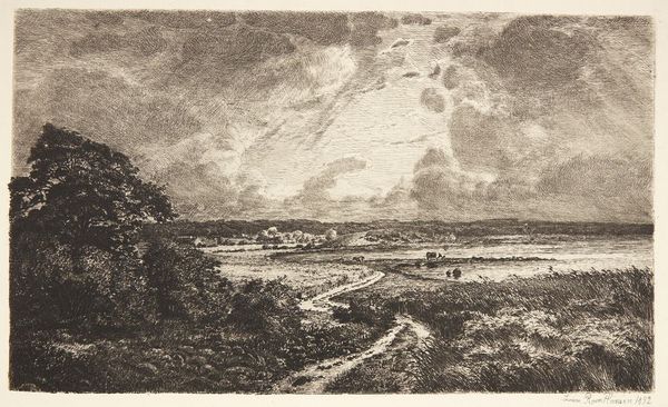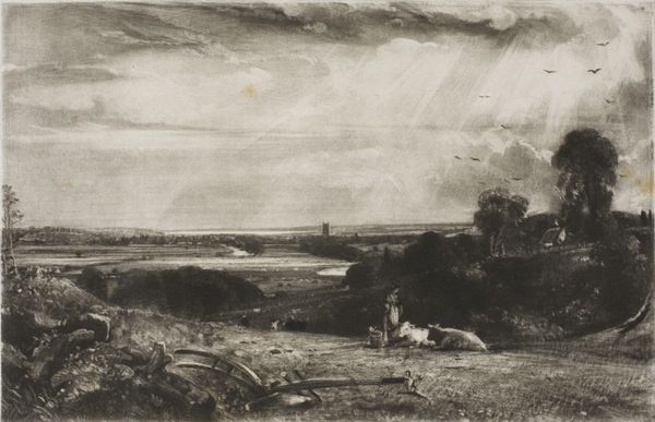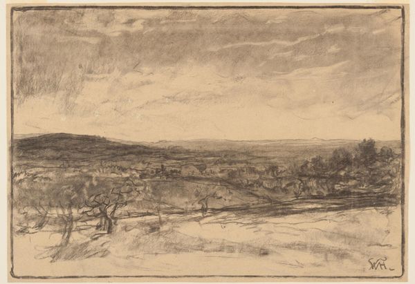 "The South Downs" is a graphite drawing on paper, created by an anonymous artist. The scene evokes a sense of rural England, a landscape that holds deep cultural significance, particularly in the context of the late 18th and early 19th centuries. During this period, the English countryside became a focal point for ideas about national identity and social order. As the Industrial Revolution progressed, the rural landscape was often idealized as a space of purity and authenticity. The image creates meaning through its soft lines and delicate shading, presenting a serene view of nature. The South Downs, with their rolling hills, are located in the south of England. This region was undergoing significant change, with the rise of agricultural capitalism and the enclosure of common lands. Understanding this drawing requires attention to the social and economic forces that were shaping the English countryside. Historical research and analysis can help us understand the drawing's cultural significance, and its place within the broader history of landscape art. Art is contingent on its social and institutional context.