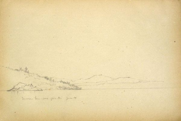 Editor: This is Benjamin Champney’s pencil sketch, "Lake Mooselucmaguntic, Maine." It’s small, almost intimate, and very delicate. What strikes me is how seemingly unfinished it feels. What's your take on it? Curator: I see this as a quintessential example of nineteenth-century American landscape art's evolving relationship with nature and tourism. These sketches often served as preparatory studies for larger, more finished paintings intended for public display. Consider the rise of tourism in Maine at this time. Editor: So, you're suggesting it's less about the lake itself and more about the *idea* of the lake, packaged for consumption? Curator: Precisely. It catered to a growing desire for picturesque scenery, reflecting a broader cultural shift towards appreciating the wilderness, and its potential for commercialisation. Did Champney return to this sketch in other works? Editor: That's fascinating. It makes me think about how artists can both celebrate and commodify a landscape simultaneously. Curator: Indeed. And it reminds us to question the cultural forces shaping even the most seemingly simple landscapes.