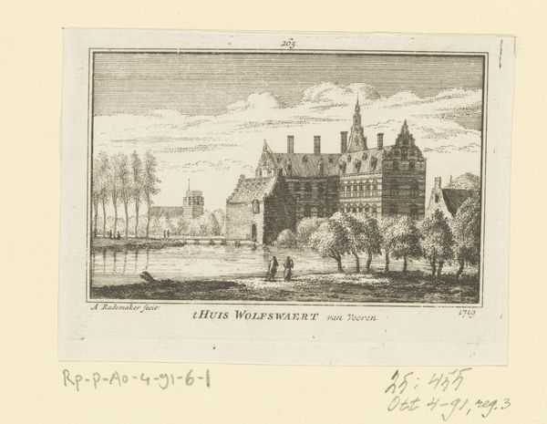 Hendrik Spilman made this print of Huis Windenburg in 1743, using the technique of etching. The image is defined by the marks left by acid on the metal plate. Think about how this process differs from drawing directly: the artist is not just representing a scene, but also engaging with the material properties of metal and acid. The fine lines, the delicate shading – all are products of a carefully controlled chemical reaction. Prints like this were commercial products. They were relatively inexpensive and could be widely distributed, bringing views of grand houses like Windenburg to a broad audience. The very act of etching, a reproducible medium, reflects the growing mercantile culture of the 18th century. So, when we look at this print, we are not just seeing a building. We are also seeing the traces of labor, of industrial processes, and of a society increasingly shaped by mass production. By considering these elements, we can gain a richer understanding of this image, and of the world that created it.