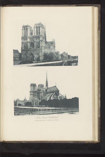 This is a photograph of the Notre-Dame Cathedral in Paris, made by an anonymous photographer at an unknown date. Photographs like these were produced in multiples and sold as souvenirs, relying on paper and darkroom chemistry, materials of both documentary and artistic expression. This image captures the cathedral's facade in great detail, emphasizing the stone's texture and the building's intricate carvings. Notre-Dame was constructed over centuries, involving generations of stonemasons, carpenters, and glassmakers. The original building was a massive undertaking, and this image connects with that deep history. It's important to consider not just the image, but also the larger context of labor, class, and commerce that underlies both the cathedral's construction and the photographic process. By attending to the material and the making, we can appreciate the intersection of art, craft, and social history.