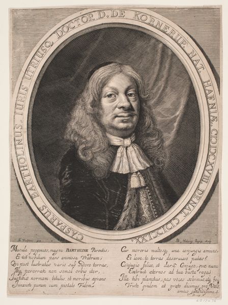 Curator: This engraving, "Carl XI," made between 1659 and 1663 by Albert Haelwegh, is quite striking, isn't it? The linear quality gives it a certain starkness, despite the opulent attire of the young king. I’m immediately drawn to the contrasting textures and how they were achieved with the limitations of the print medium. What jumps out at you? Editor: The detail is amazing! I mean, it’s a portrait, but not like a painting; you can really see the lines. What can you tell me about it? Curator: I find myself considering the production of this image. Engravings, like this one, involved significant labor. The material – the metal plate, the tools, the ink – all had a specific cost and required specialized knowledge to manipulate. We see here a portrait not as an exclusive item for the elite but rather one designed for broader distribution. This wasn't just about depicting Carl XI; it was about constructing his image, and projecting power through the relatively reproducible medium of print. Editor: So, you're saying it's about *how* the image was made, as much as who it's of? Curator: Precisely. Consider the engraver's skill. The lines create the illusion of depth and texture. He is, in essence, crafting not just an image, but a political statement intended for wider consumption, making him a vital collaborator. How do you see the choice of engraving influencing the reception of the artwork? Editor: I hadn’t thought about it that way. I suppose using a print means it could reach more people and solidify Carl XI's image and authority through repetition and distribution. Curator: Exactly! It highlights the intersection of artistic skill, political power, and the burgeoning culture of image reproduction. The piece’s materiality connects directly to the social context. What does it tell you about our understanding of art history? Editor: I guess it forces us to think beyond the surface and consider who had access, who made it, and how it was consumed, not just who's in the portrait. Thanks! Curator: Indeed, a materialist perspective challenges us to see beyond the purely aesthetic and engage with the broader socio-economic forces shaping the artwork. A lens that’s very useful in looking at art history.