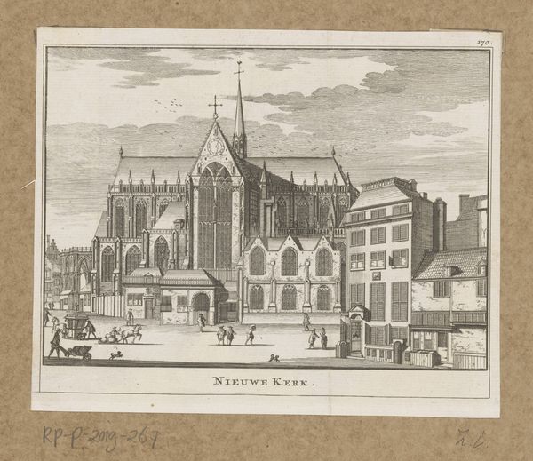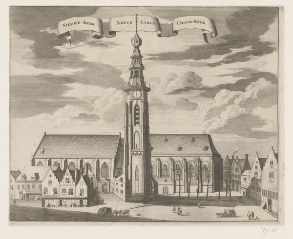 This print, depicting the Nieuwe Kerk in Amsterdam, was made by an anonymous artist using engraving, a meticulous process involving cutting lines into a metal plate, inking it, and pressing it onto paper. The work's appearance hinges on the artist's skill in manipulating line and tone, which has imbued the image with a distinct social and cultural significance, reflecting the prosperity and urbanity of Amsterdam. Engraving, traditionally associated with printmaking and reproduction, highlights the dissemination of images within a burgeoning capitalist society. The artist's labor-intensive process speaks to the commercial demands for visual representations of architecture and city life. By understanding the materials, the making, and the historical context, we can see beyond the image itself. We begin to understand its role in reflecting, and shaping, Amsterdam’s cultural identity. The print challenges the distinction between fine art and craft, blurring the lines of how we see and value images in society.