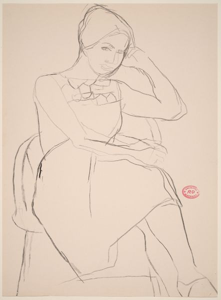 Editor: This is Henri Matisse’s "Jeune Femme," created in 1944. It's a line drawing of a young woman, seemingly lost in thought. The simplicity of the lines is striking. What do you see in this piece, beyond the initial impression? Curator: The scarcity of materials during the Second World War is certainly a factor here. We see Matisse, a master of color, turning to line, driven by necessity and, perhaps, a desire to distill form to its essence. The choice to work with paper and ink—relatively accessible materials even then—reflects a resourcefulness, doesn't it? Editor: Absolutely. It’s like he’s making the most of what's available, turning restriction into a kind of artistic statement. Curator: Precisely! The line itself becomes the subject, demonstrating his profound understanding of how much can be communicated through so little. Consider the labor involved – each deliberate mark shaping the form, replacing layers of color and shading. Do you think the seeming simplicity of it might be deceptive? Editor: I think so. The minimalism belies the skill and decision-making behind each stroke. It really emphasizes the physical act of drawing itself. It feels incredibly intimate in that respect. Curator: Exactly. It forces us to reconsider our understanding of "high art." Matisse elevates a readily available, simple medium through masterful control and a deep understanding of form and line. Think about what that meant for the consumption of art at that time. Editor: It definitely challenges this idea that art needs to be extravagant to be meaningful. Curator: Indeed. It reminds us to look beyond the surface and consider the conditions under which the artwork came into being, the labor invested, and the message conveyed through its materials. Editor: I’ve never considered it in this light before. It makes me appreciate not just the final image but also the process behind its creation. Thanks for enlightening me.