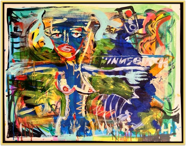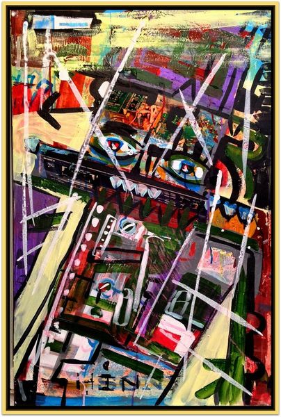 David Michael Hinnebusch made "Pittsburgh S Team" with paint on canvas, and it’s a wild ride of color and energy. The way he attacks the canvas, it’s all guts, no hesitation. It’s about the thrill of the making. Looking closely, you see how the thick paint almost has its own life, these globs and smears that feel almost sculptural, not just descriptive. Take, for example, the jagged yellow streaks cutting across the upper part of the canvas. They’re like bolts of lightning, charged with a kind of electric joy. They don't just sit there; they move, vibrate, and speak to the sheer physicality of the paint itself. Hinnebusch reminds me of someone like Guston, who wasn't afraid to get messy, to let the painting be a record of the struggle and the joy. It’s about embracing the journey, with all its beautiful, chaotic messiness.