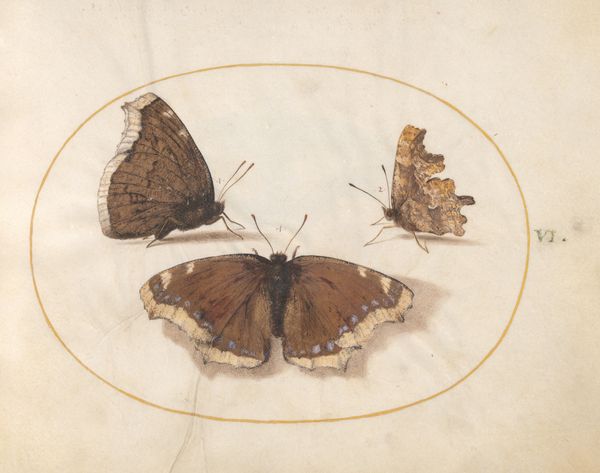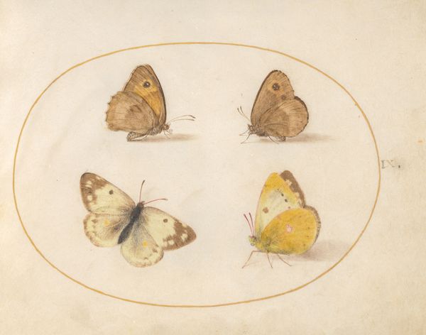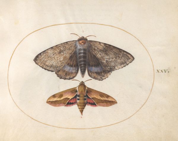 Joris Hoefnagel created this meticulous study of moths on paper, sometime in the late 16th century. Hoefnagel worked with watercolor and gouache, painstakingly building up layers of pigment to achieve a lifelike naturalism. The artist’s hand is remarkably precise, seen in the delicate rendering of each moth’s unique pattern and texture. But this wasn't art for art's sake. It was scientific illustration. In Hoefnagel’s time, there was increasing interest in natural philosophy. This artwork reflects the era's growing desire to document and classify the natural world, a pursuit driven by exploration and burgeoning trade routes. These scientific drawings were luxury commodities in themselves, collected by wealthy patrons. The work speaks volumes about a society on the cusp of profound scientific advancements, where art and science were intertwined, and where the handmade object was still the primary means of capturing and disseminating knowledge. The care and craftsmanship put into this artwork remind us that even seemingly straightforward depictions carry layers of cultural and historical significance.