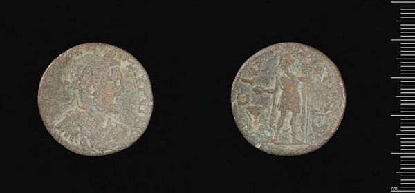 Editor: This is an image of a coin from Nicopolis under Augustus. It looks like bronze. Given its state, I wonder about its circulation—was it widely used, or was it hoarded? What can you tell me about it? Curator: Well, the materiality of this coin speaks volumes about the Roman economy and its interaction with Nicopolis. The bronze composition, its weight and size, all dictated its economic value and its accessibility to different social classes. How do you think its production influenced the local economy? Editor: I hadn't thought about it that way. I guess the mining and crafting of these coins would be a significant industry. Curator: Exactly. The labor involved, the resources extracted – it all points to a complex network of production and consumption. Think about what this little object represents in terms of resource management and societal structure. Editor: It's amazing to think about how much history is embedded in this single coin! Thanks for sharing! Curator: My pleasure. It's all about understanding the material world and its impact on society.